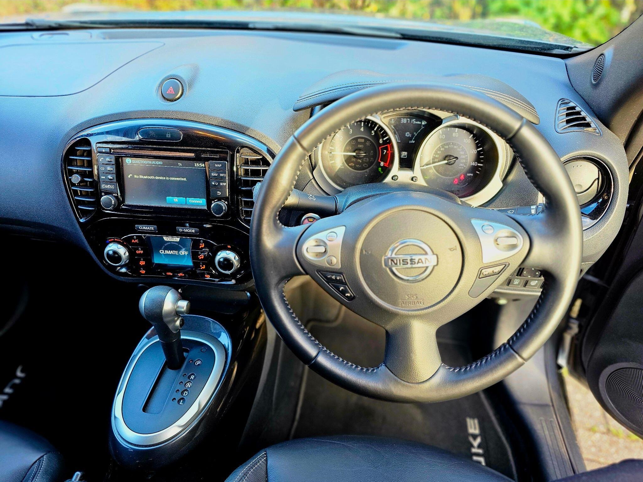 This 2018 Nissan Juke Tekna presents a remarkable opportunity with its exceptionally low mileage of just 38,715 miles for its age. This Euro 6 compliant 1.6 litre petrol model boasts a premium black leather interior complemented by a black centre console and an attractive black exterior pack. Driving is made safer and more comfortable with features such as Blind Spot Warning including Blind Spot Assistance, automatic climate control with a pollen filter, and automatic headlights that activate with the dusk sensor. Furthermore, the BOSE Personal Sound System delivers an immersive audio experience, making every journey more enjoyable.